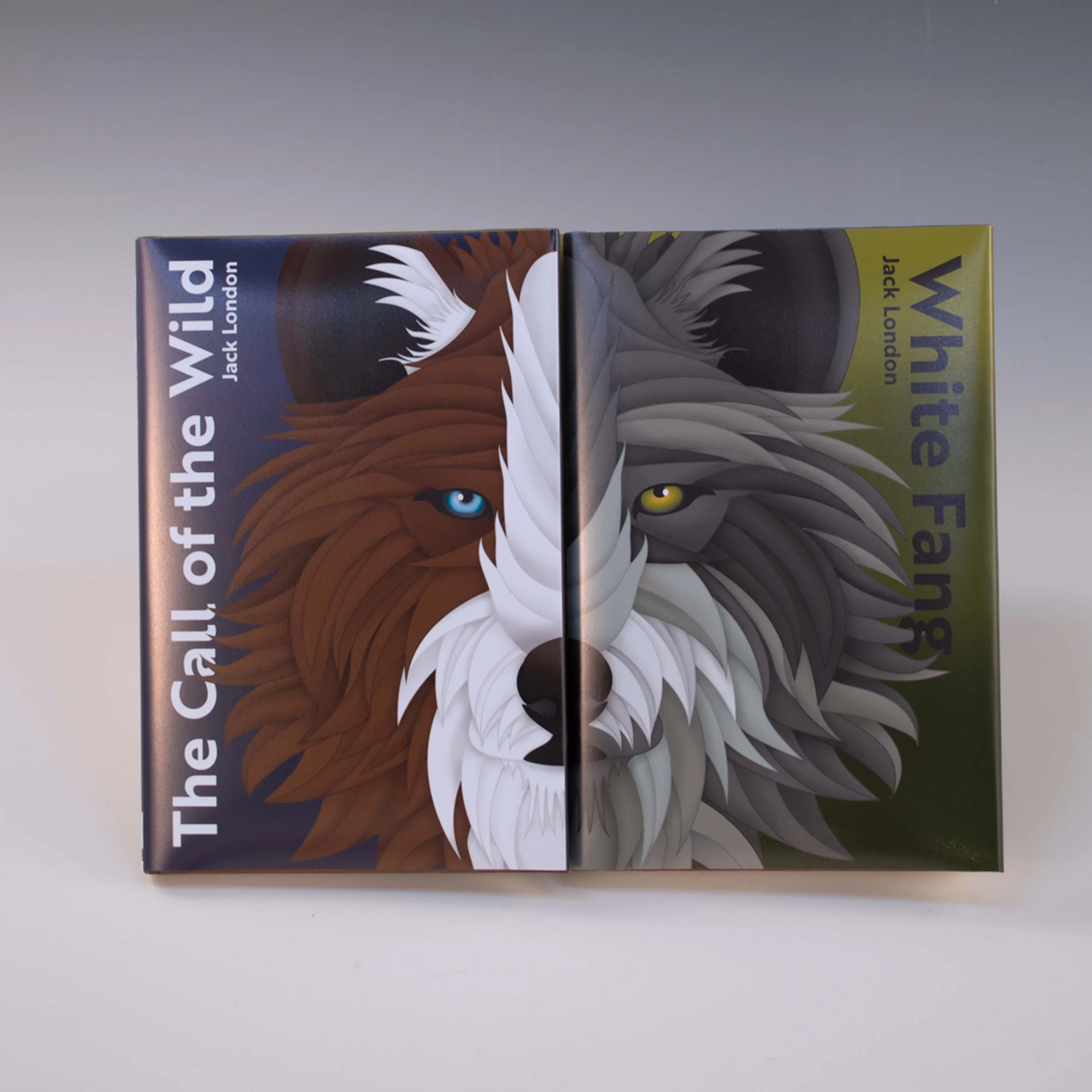 Dust jackets for London’s quintessential personification companion series The Call of the Wild and White Fang. This series design is one of many covers designed by us.
